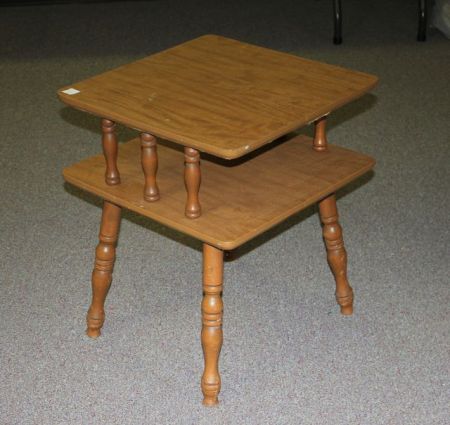 Vintage 60's Two Tier End Table; 18" square, 22" h. Vintage 60's Two Tier End Table; 18" square, 22" h.