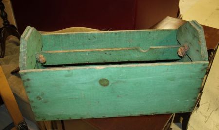 Green Wooden Tool Box; 12" h., 24" l., 10" d. Green Wooden Tool Box; 12" h., 24" l., 10" d.