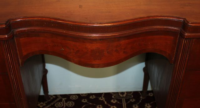Satinwood Inlaid Kneehole Desk with Sheraton Legs; 30 1/2" h., 47" w., 19" d. Satinwood Inlaid Kneehole Desk with Sheraton Legs; 30 1/2" h., 47" w., 19" d.