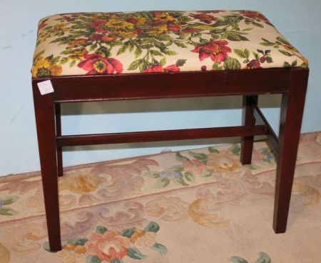 Mahogany Vanity Stool; 18" h., 21" w., 13 1/2" d. Mahogany Vanity Stool; 18" h., 21" w., 13 1/2" d.
