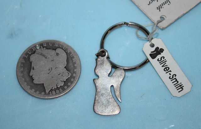 Sterling Silver Key Ring Along with Worn 1885 Silver Dollar (with hole for chain) Sterling Silver Key Ring Along with Worn 1885 Silver Dollar (with hole for chain)