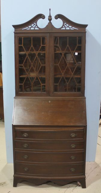 Mahogany Dropfront Desk with Bookcase Top; 78" h., 31" w., 17 1/2" d. Mahogany Dropfront Desk with Bookcase Top; 78" h., 31" w., 17 1/2" d.