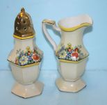 Noritake Sugar Shaker and Creamer, made in Japan 7 1/4" h. Noritake Sugar Shaker and Creamer, made in Japan 7 1/4" h.