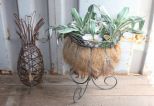 662 Metal Pineapple and Flower Pot