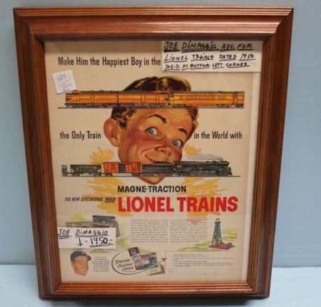 1950 Lionel Train Advertising Picture Featuring Joe Dimaggio; 13 1/2" w., 16 1/2" h. 1950 Lionel Train Advertising Picture Featuring Joe Dimaggio; 13 1/2" w., 16 1/2" h.