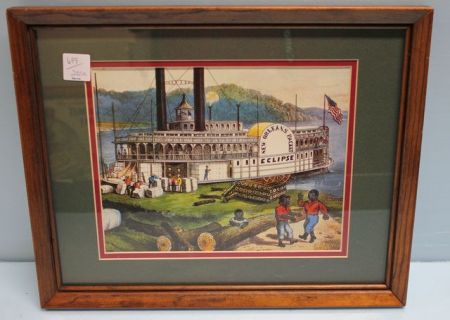 Picture of Cotton Being Leaded Onto the New Orleans Eclipse Packet Riverboat; 15" w., 12" h. Picture of Cotton Being Leaded Onto the New Orleans Eclipse Packet Riverboat; 15" w., 12" h.