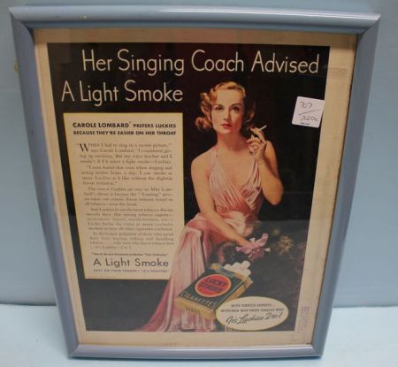 1937 Lucky Strike Advertising Picture Featuring Carole Lombard; 12" w., 15" h. 1937 Lucky Strike Advertising Picture Featuring Carole Lombard; 12" w., 15" h.