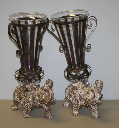 Decorative Elephant Vase Holders; 16" h. Decorative Elephant Vase Holders; 16" h.