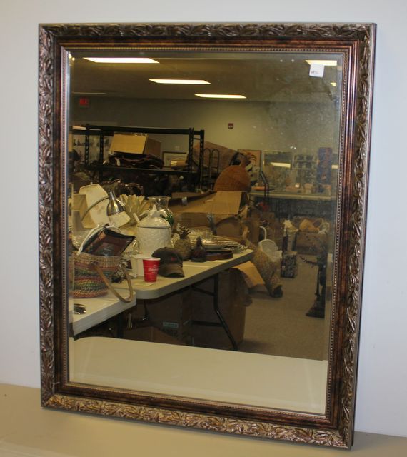 Framed Beveled Mirror; 34" h., 28" w. Framed Beveled Mirror; 34" h., 28" w.