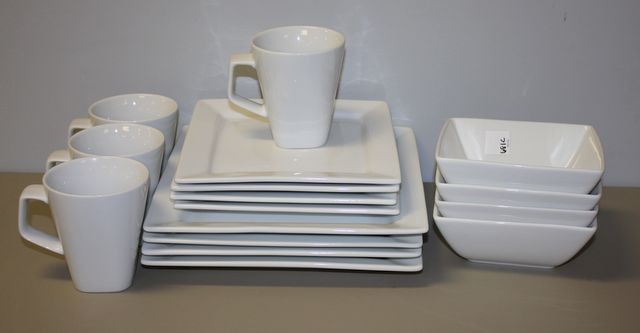 White Canopy Dinnerware Set; four dinner plates, four luncheon plates, four bowls, four cups; total sixteen pieces White Canopy Dinnerware Set; four dinner plates, four luncheon plates, four bowls, four cups; total sixteen pieces