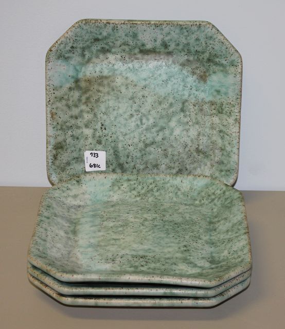 Group of Four Peter's Pottery Plates, with chamfered edges; 9 1/2" square Group of Four Peter's Pottery Plates, with chamfered edges; 9 1/2" square