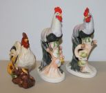 Three Rooster Figurines; two Lefton china figurines, one unmarked; 7" h. Three Rooster Figurines; two Lefton china figurines, one unmarked; 7" h.
