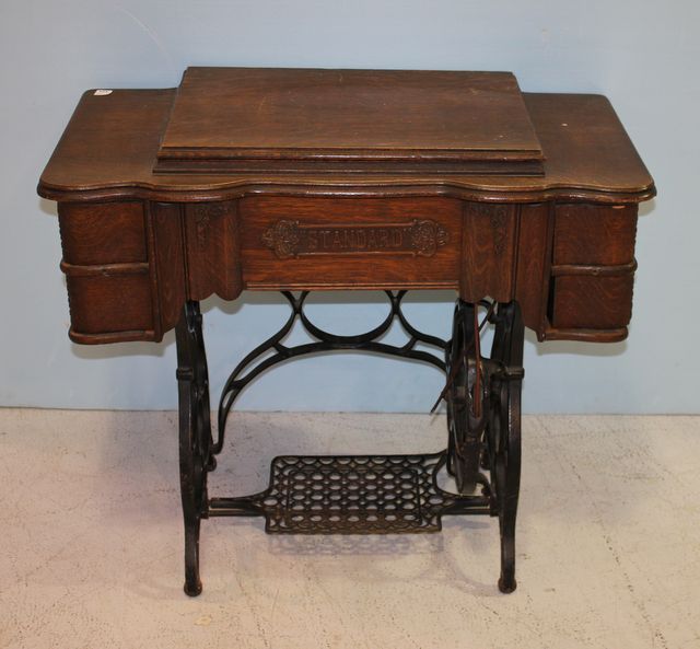 Early 20th Century Standard Sewing Machine, iron base and wood case, Tiger Oak Early 20th Century Standard Sewing Machine, iron base and wood case, Tiger Oak