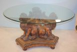 Winged Griffin Dining Table with Glass Top, base made of composite; 60" dia. Winged Griffin Dining Table with Glass Top, base made of composite; 60" dia.