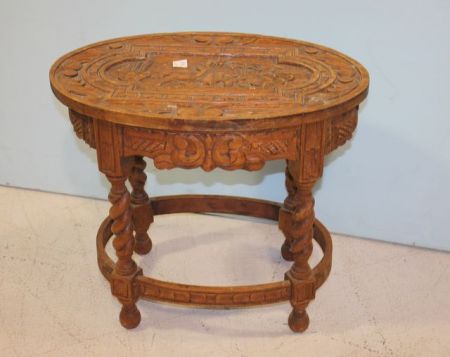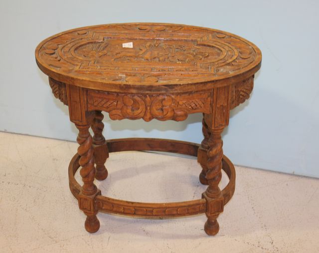 Vintage Carved Side Table, oval; 21" w., 19" h. Vintage Carved Side Table, oval; 21" w., 19" h.