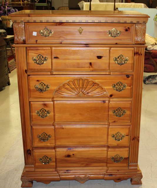 Pine Six Drawer HiBoy, Palasky Furniture; 55" h., 38" w. Pine Six Drawer HiBoy, Palasky Furniture; 55" h., 38" w.