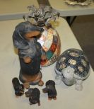 Group of Six Miscellaneous Items including a painted pineapple stand, sandi cast hand painted standing dachshund, three small dachshunds and a resin turtle Group of Six Miscellaneous Items including a painted pineapple stand, sandi cast hand painted standing dachshund, three small dachshunds and a resin turtle