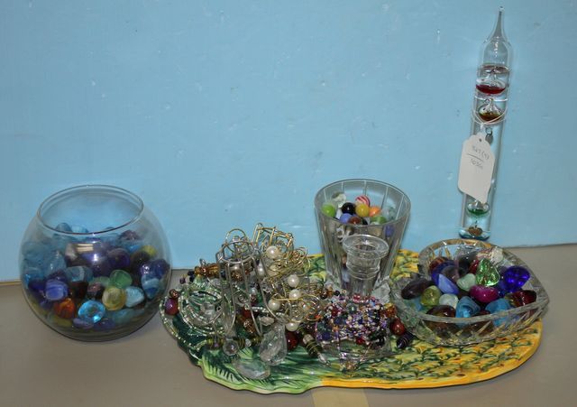 827 Pineapple Tray, Glass Vases, a Heart, Marbles and a Candle Decoration