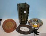 Oval Plaques, Smoky Green Vase (10" h.), a Candleholder and a Frame Oval Plaques, Smoky Green Vase (10" h.), a Candleholder and a Frame