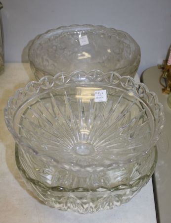 848 Three Pressed Glass Punch Bowls and a Glass Center Compote