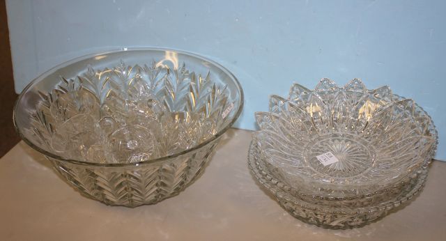 Pressed Glass Punch Bowl and Cups with Three Bowls Pressed Glass Punch Bowl and Cups with Three Bowls