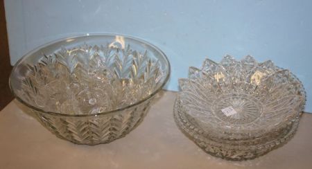 858 Pressed Glass Punch Bowl and Cups with Three Bowls