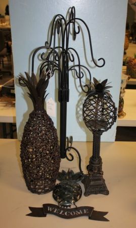 861 Iron Candleholders and a Metal Welcome Sign