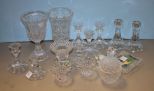 Group of Glass Candlesticks, a Covered Jar, and a Frame Group of Glass Candlesticks, a Covered Jar, and a Frame