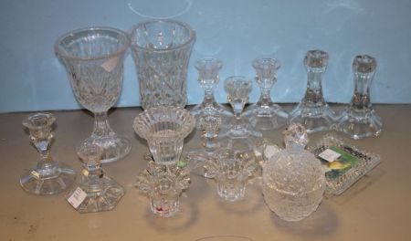 872 Group of Glass Candlesticks, a Covered Jar, and a Frame