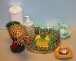 Round Brass Tray, a Pineapple Coaster Set, Candlesticks, a Dispenser and Signs Round Brass Tray, a Pineapple Coaster Set, Candlesticks, a Dispenser and Signs