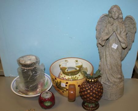 A Resin Angel, a Large Cup, and a Vase A Resin Angel, a Large Cup, and a Vase