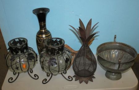 Group of Decorative Items, including; metal vase, metal planter and candleholders Group of Decorative Items, including; metal vase, metal planter and candleholders