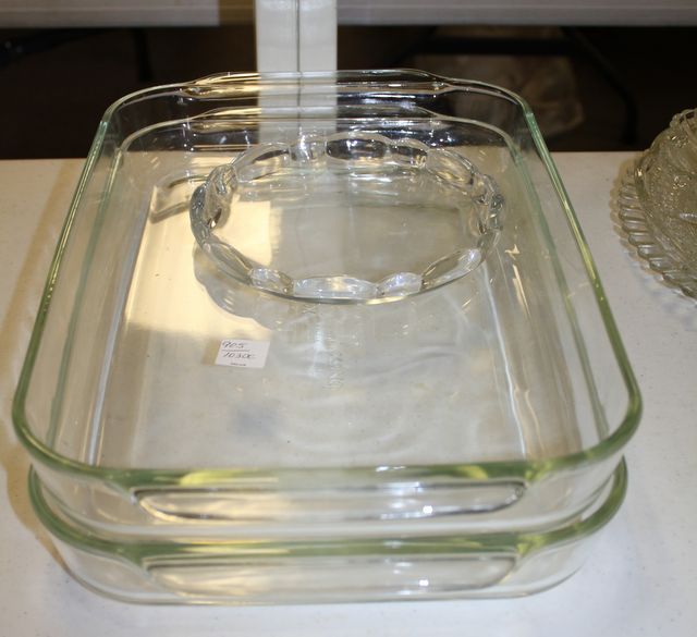 Two Large Pyrex Rectangular dishes and a Glass Dish Two Large Pyrex Rectangular dishes and a Glass Dish