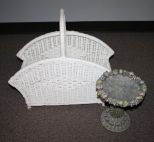 941 Wicker Basket and a Resin Compote