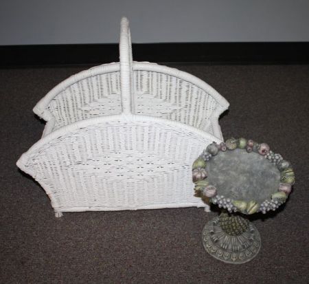 Wicker Basket and a Resin Compote Wicker Basket and a Resin Compote