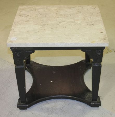 Black Side Table With Marble Top; 18" square., 16" h. Black Side Table With Marble Top; 18" square., 16" h.