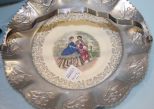 Vintage Farber & Shelvin Plate in Aluminum Frame; 9 1/2" w., Decorative Leaf Tray 11" w., Decorative Silver Plate Leaf Tray 20" w. Vintage Farber & Shelvin Plate in Aluminum Frame; 9 1/2" w., Decorative Leaf Tray 11" w., Decorative Silver Plate Leaf Tray 20" w.