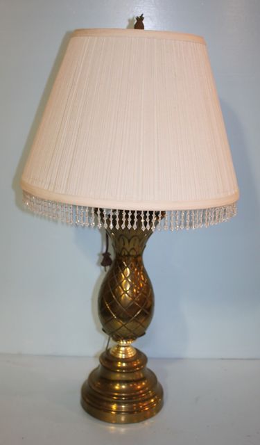 Pineapple Brass Lamp, with shade and pineapple finial, 31"h. Pineapple Brass Lamp, with shade and pineapple finial, 31"h.