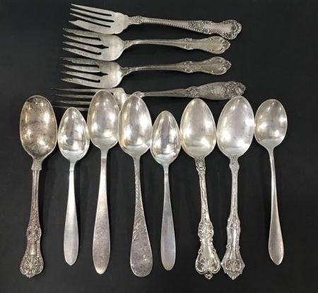 Eight Sterling Spoons and Four Sterling Salad Forks, assorted styles. Eight Sterling Spoons and Four Sterling Salad Forks, assorted styles.