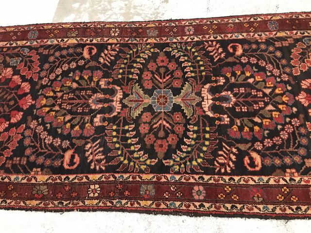 Hamedan Hand Woven Runner, wool, good condition, 3'8 x 14'4, was climate controlled storage, from Red Baron in Atlanta. Photo will appear lighter color than the actual color. Hamedan Hand Woven Runner, wool, good condition, 3'8 x 14'4, was climate controlled storage, from Red Baron in Atlanta. Photo will appear lighter color than the actual color.