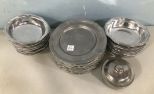 The Wilton Company Pewter Bowls and Plates, nice set, Twelve 9" salad plates, Twelve serving bowls, sugar, Twelve dinner plates, tray, salt and pepper, good condition. The Wilton Company Pewter Bowls and Plates, nice set, Twelve 9" salad plates, Twelve serving bowls, sugar, Twelve dinner plates, tray, salt and pepper, good condition.