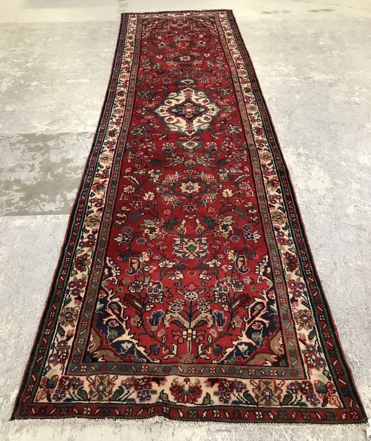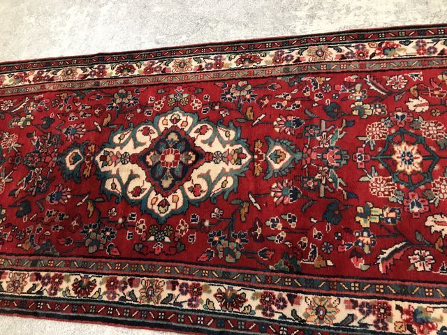 Hamedan Iron Hand Woven Runner, wool, good condition, 3'6 x 12'8, was climate controlled storage, from Red Baron in Atlanta. Photo will appear lighter color than the actual color. Hamedan Iron Hand Woven Runner, wool, good condition, 3'6 x 12'8, was climate controlled storage, from Red Baron in Atlanta. Photo will appear lighter color than the actual color.
