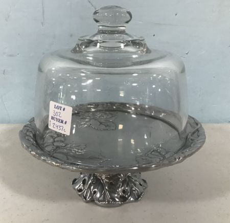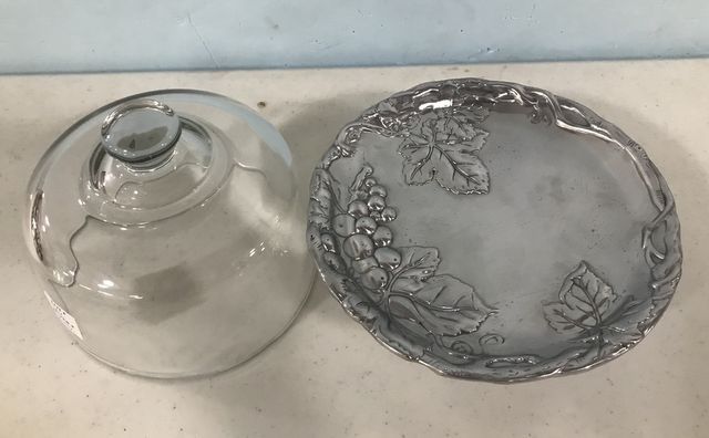 Arthur Court Pewter Compote Stand, glass dome, grape pattern, 8"h. Arthur Court Pewter Compote Stand, glass dome, grape pattern, 8"h.