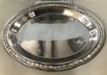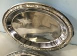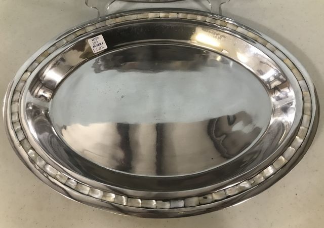 Pair of Pewter Mother Of Pearl Serving Trays, mother of pearl style banded, good condition, 19"w. Pair of Pewter Mother Of Pearl Serving Trays, mother of pearl style banded, good condition, 19"w.