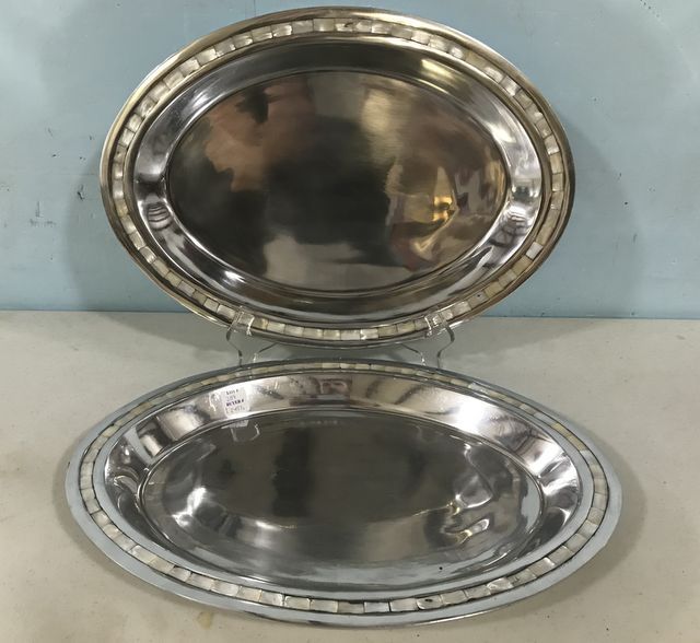 309 Pair of Pewter Mother Of Pearl Serving Trays
