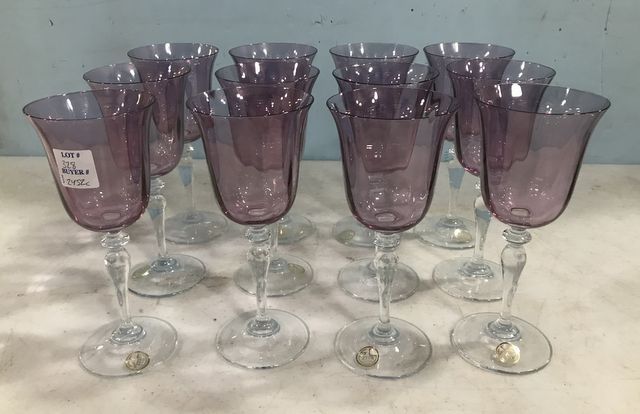 12 SC Line Crystal Stemware Wine Glasses, made in Italy, amethyst color, no chips, 7"h. 12 SC Line Crystal Stemware Wine Glasses, made in Italy, amethyst color, no chips, 7"h.