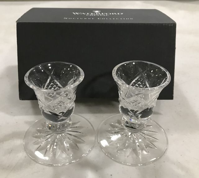 Pair of Waterford "Nocturne" 3" Candle Sticks, in box. Pair of Waterford "Nocturne" 3" Candle Sticks, in box.