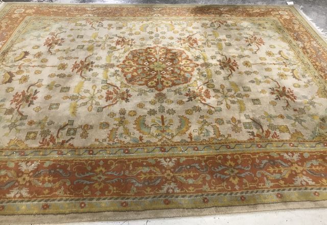 Royal Jahan Hand Woven Area Rug, cream and rust, made in India, 9' x 12', recently cleaned 1/28/20. Royal Jahan Hand Woven Area Rug, cream and rust, made in India, 9' x 12', recently cleaned 1/28/20.