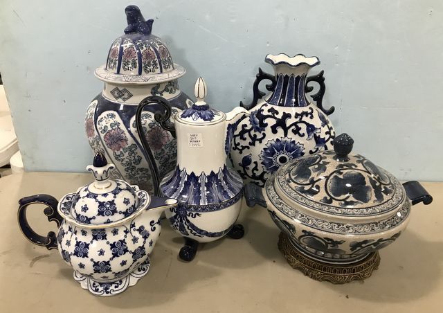 363 Group of Blue and White Pottery Decor Pieces