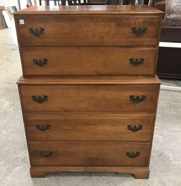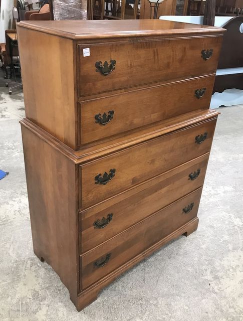 Vintage Early American Style Chest Dover, five drawers, Chippendale pulls, mahogany, 51"h., 36"w., 19"d. Vintage Early American Style Chest Dover, five drawers, Chippendale pulls, mahogany, 51"h., 36"w., 19"d.